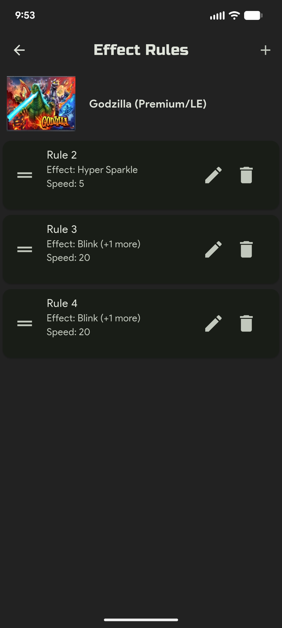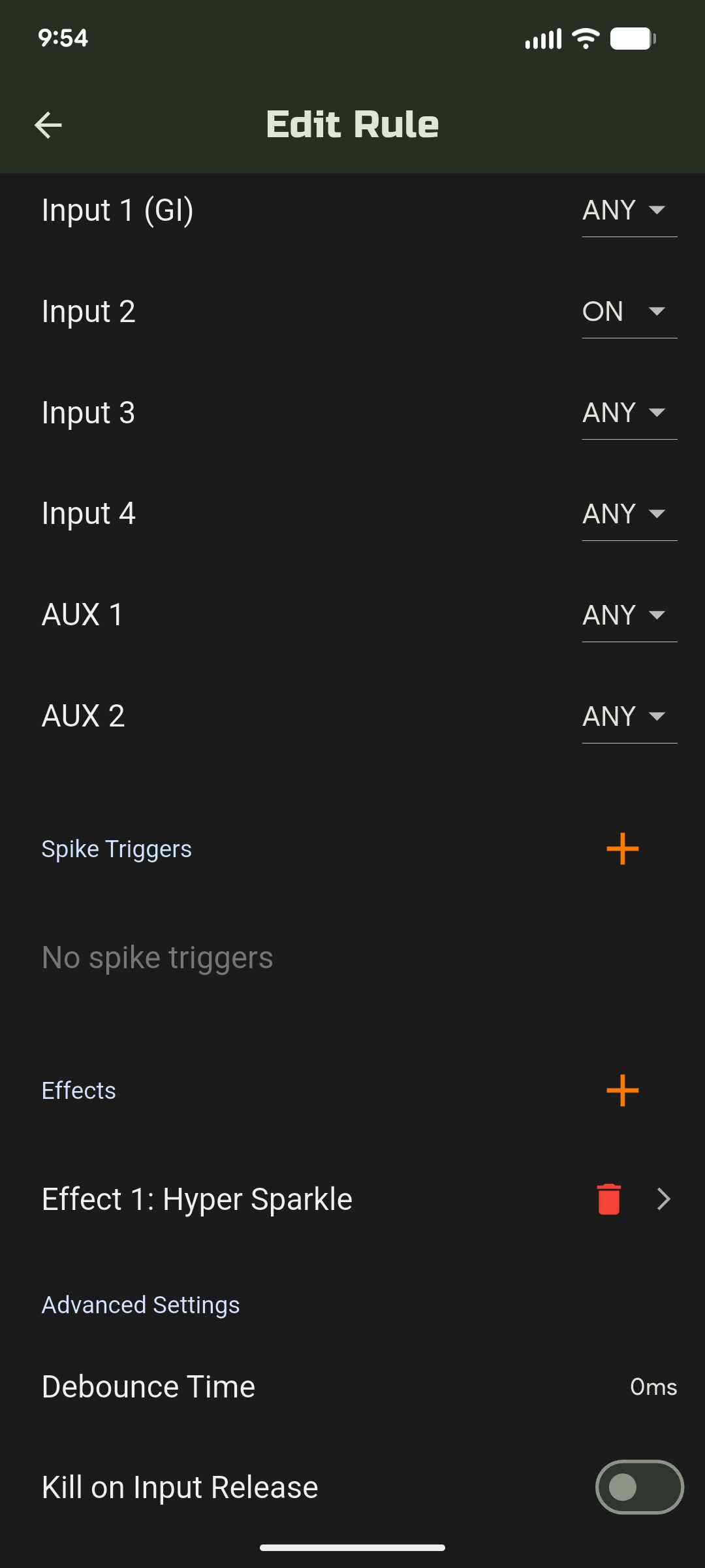 Advanced rules-based system: Trigger effects based on the state of one or more inputs. You can also randomize across several different effects for any given trigger so that things are always looking fresh!